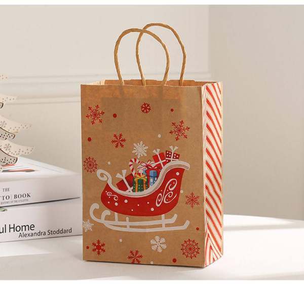 Пакет бумажный крафтовый Новогодний "Санки" с крученой ручкой (27*11*21)